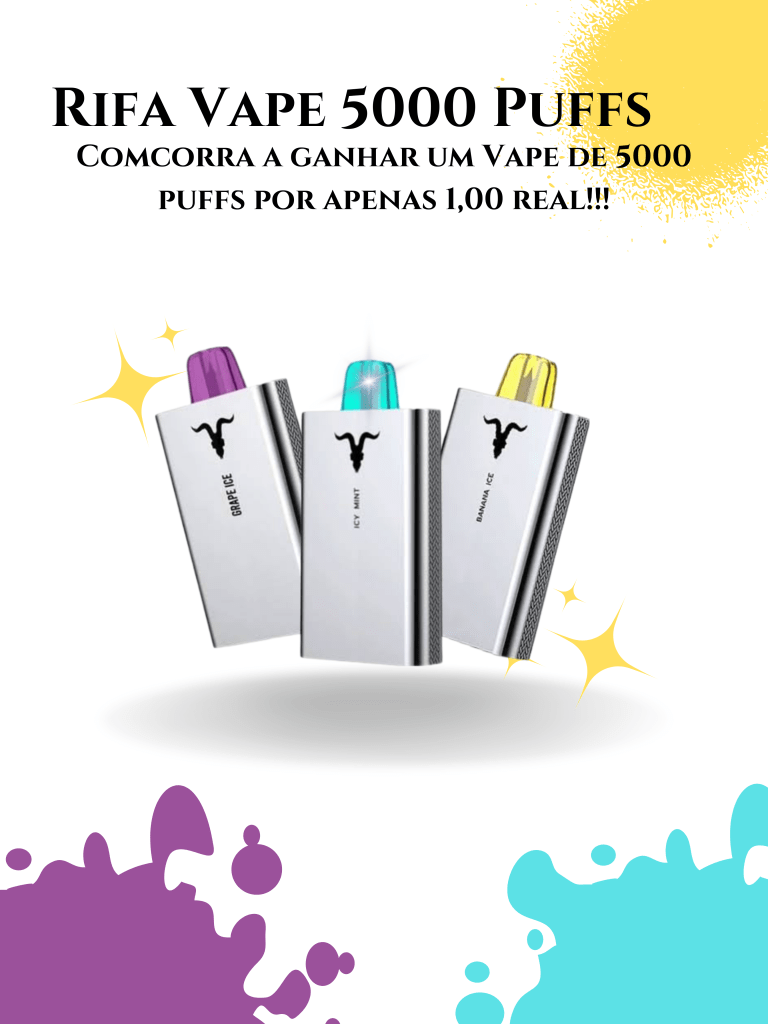 Compre essa rifa por apenas 1,00 Real e concorra a ganhar um Vape 5000 puffs novo!